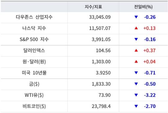 [글로벌시장 지표 / 2월 23일 오전 6시 현재]