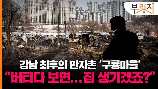 안녕하세요. 부릿지 조성준입니다. 오늘 제가 나온 곳은 서울 강남 최후의 무허가 판자촌으로 불리는 구룡마을입니다. 지난달 화재 사고의 흔적이 고스란히 남아 있는 이곳에 나온 이유. 최근 이 일대의 재개발 계획이 언론을 통해 공개됐기 때문입니다. 3600가구 규모의 아파트 단지로 공공재개발하겠다는 이야기였는데요.