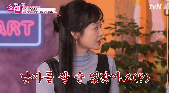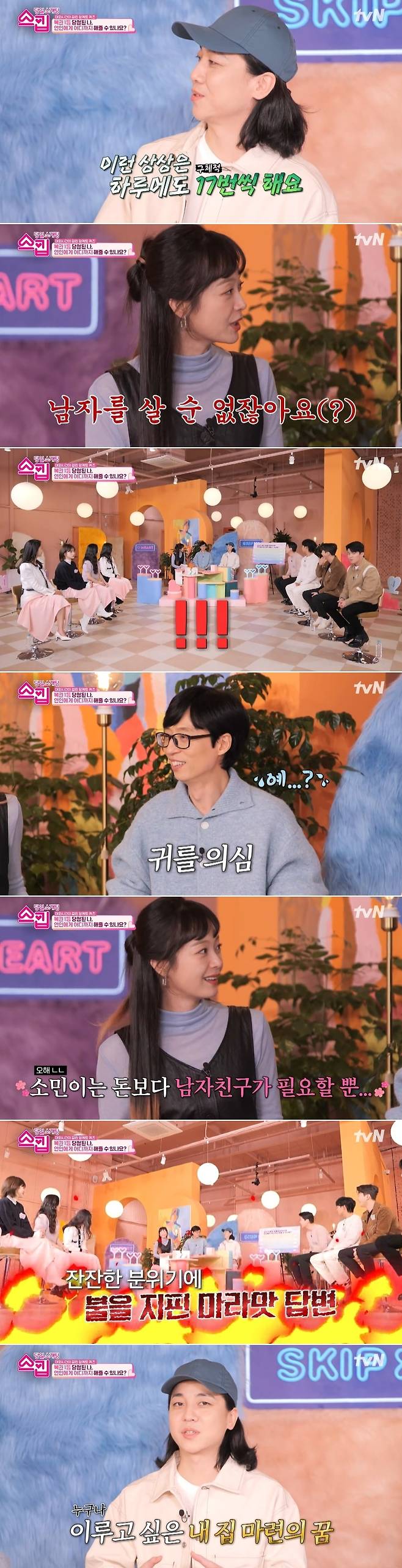 2월 23일 방송된 tvN '스킵'에서는 '갑자기 복권 1등에 당첨된다면?' 이라는 주제로 이야기를 나누는 참가자들의 모습이 담겼다.