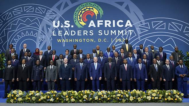 | ▲ 미국-아프리카 지도자 회담 마지막 날인 15일(현지시간) 미국 워싱턴DC에서 조 바이든 미국 대통령과 아프리카 정상들이 단체 사진을 찍고 있다. 지난 13일부터 사흘간 열린 이번 회의에는 아프리카 49개국과 아프리카연합(AU) 대표단이 참가했다. 2022.12.16 |
