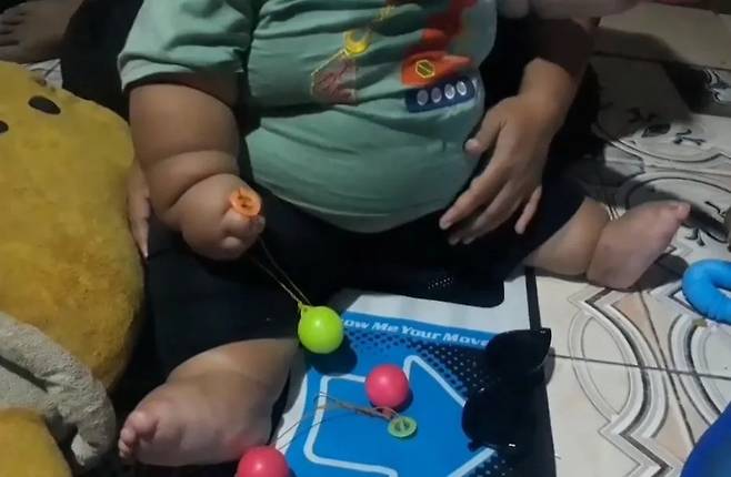 23일(현지시간) 영국 데일리메일에 따르면, 인도네시아에 사는 생후 16개월 남자아이 켄지는 몸무게가 27.2㎏으로, XXXL 사이즈의 기저귀를 착용한다. 또래의 평균 몸무게는 9.9㎏으로, 켄지는 또래보다 몸무게가 3배에 달한다.