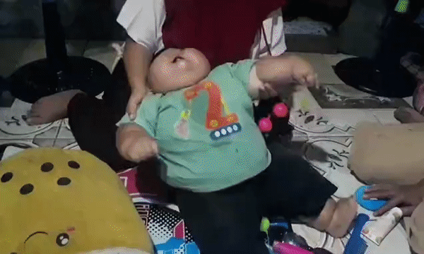 또래 3배 크기…‘아빠 옷’ 입는 인니 16개월 아기의 사연