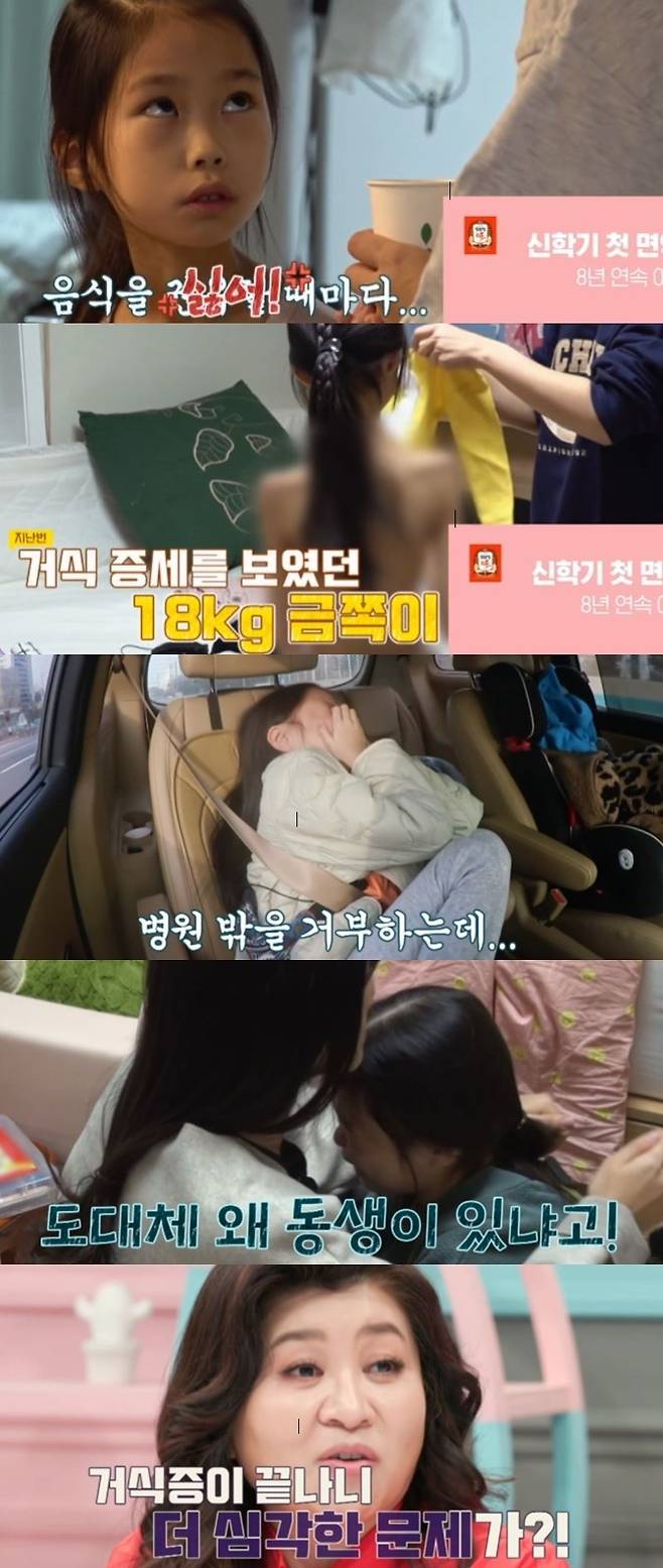 하지만 아이에게는 새로운 문제가 있었다. 그는 "병원에 다시 가고 싶다" "대체 왜 동생이 있냐고"라며 오열했다. 건강은 회복했지만 폭식을 하기도 했다.