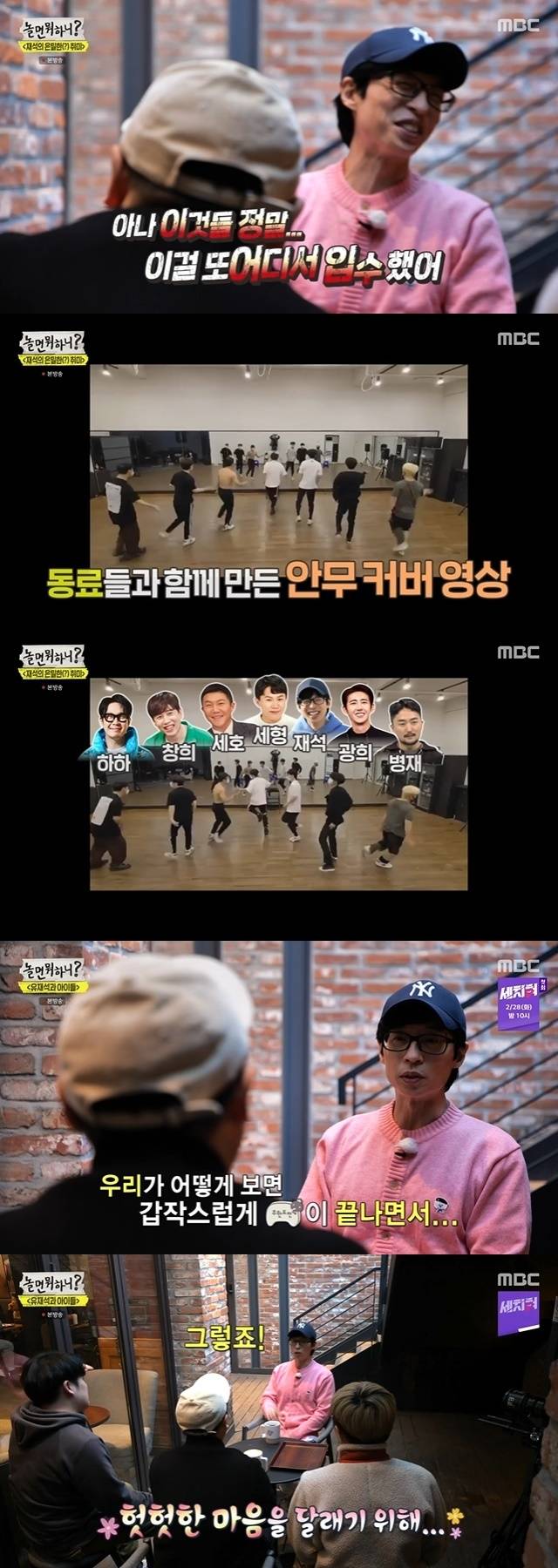 이어 "한편으로는 이런 얘기가 어떨지 모르지만 세형이, 세호, 광희 같은 경우 '무도' 멤버잖나. 갑작스럽게 '무도'가 끝나면서 저희도 갑작스러웠다. 나름 그런 허전함도 있고, 이건 제 개인적 생각이니까. 전 늘 그런 미안함과 그런 고마움이 멤버들에게 있었다"며 마침 코로나19와 겹친 시기에 멤버들과 안무 연습을 했던 것이라고 밝혔다.