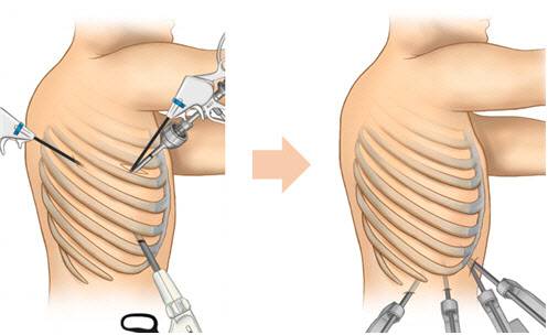 그러나 이러한 수술법에도 단점이 있다. 비록 2~3개의 작은 구멍에 불과하지만 갈비뼈 사이를 절개해야 하는데, 이곳에는 척수로부터 갈라져 나온 늑간 신경(갈비뼈 사이 신경)이 위치하고 있어 수술 후 신경 손상 및 합병증이 발생할 위험이 매우 높다는 점이다.
