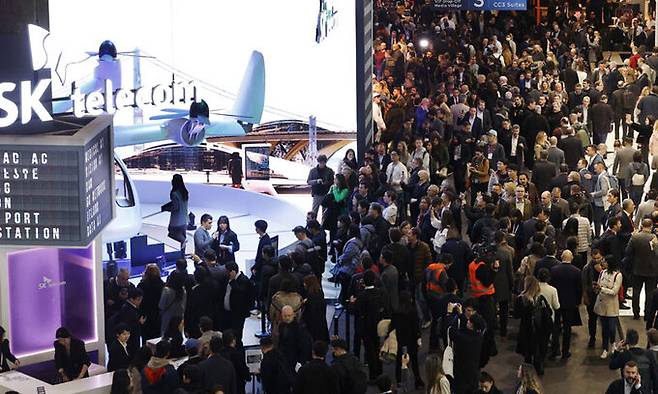 국내 기업 전시장 인산인해 스페인 바르셀로나에서 열린 세계 최대 이동통신 박람회 ‘모바일월드콩그레스(MWC) 2023’ 개막 첫날인 27일(현지시간) 관람객들이 삼성전자와 SK텔레콤 등 국내 기업 전시장들을 둘러보고 있다. 올해 MWC는 ‘내일의 기술을 실현하는 오늘의 속도’를 주제로 나흘간 열린다. 바르셀로나=사진공동취재단