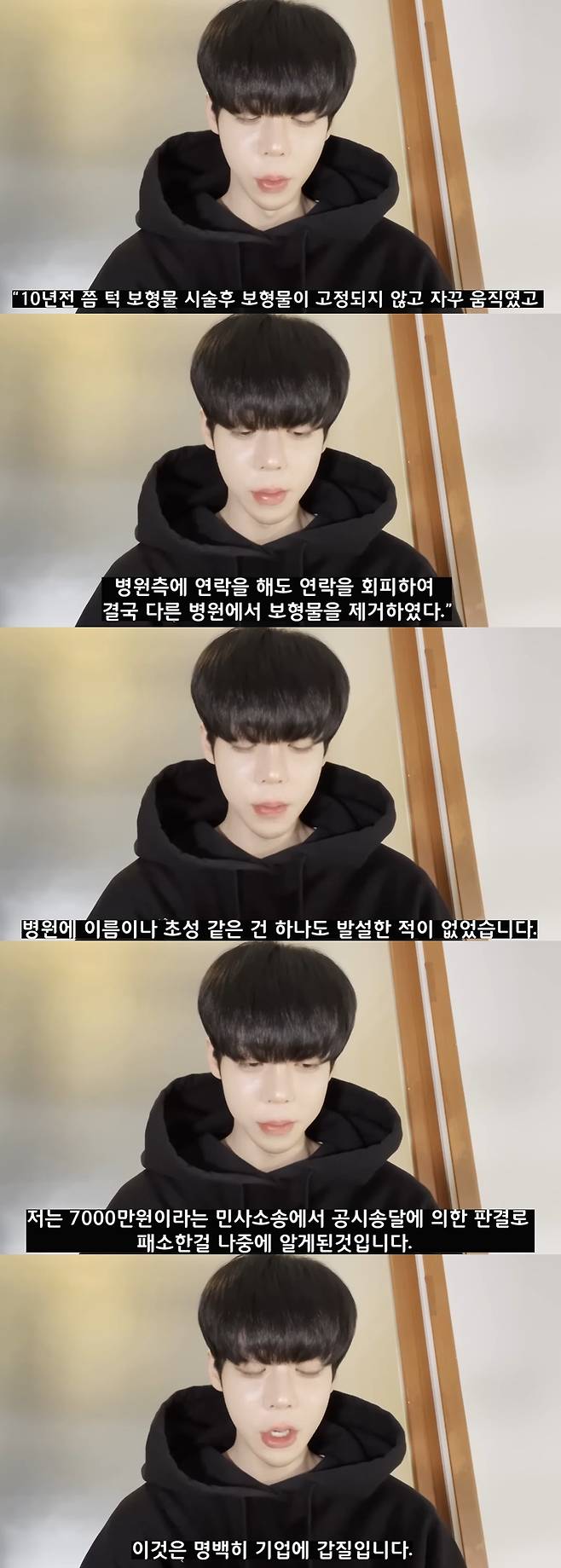 그러나 영상 업로드 직후 병원 측에서 영상을 즉시 삭제하라는 내용 증명이 왔다고 고백했다.