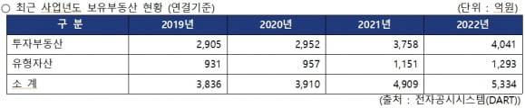 업계에 따르면 한신공영은 그동안 부동산 불황에 대비해 현금성 자산 증대를 위해 노력해 왔다. 지난해 현금성 자산 보유 비율은 2019년보다 47% 증가한 4312억원으로 집계됐다. 여기에 서울 서초구 잠원동 본사 부지 등 보유부동산 기반의 자금 조달도 가능하다. 한국신용평가는 "지난해 말 기준 약 4000억원의 현금성 자산을 보유한 가운데 본사 부지 등 보유 부동산 기반의 대체 자금 능력도 인정된다"고 평가했다.
