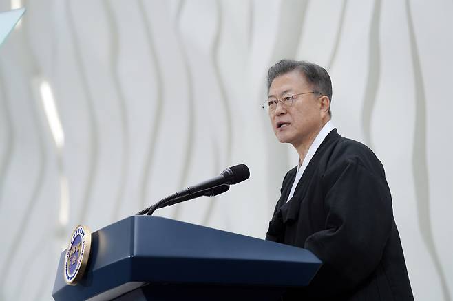 | ▲ 2022년 3월 1일 문재인 대통령이 서울 서대문구 국립 대한민국임시정부 기념관에서 열린 제103주년 3.1절 기념식에서 기념사를 하고 있다. |