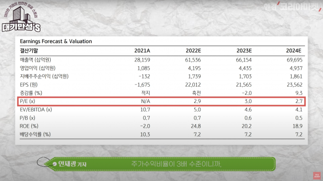 이런 선물 세트 같은 주식을 투자자들은 별로 안 좋아하죠. 더구나 지분만 들고 있는 껍데기 지주사는 더 안 좋아하고요. 주가수익비율(PER)이 3배 수준이니까, 코스피 평균의 10배 대비 크게 낮은데. 이런 이유입니다. 대신 사업 하나가 잘 안되면 하나가 잘 되고, 서로 보완하는 효과가 있습니다.