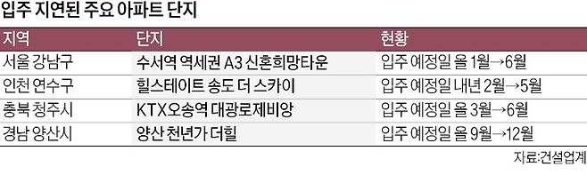 전국 신축 아파트 공사 현장에서 입주가 수개월씩 지연되는 사례가 속출하고 있다.