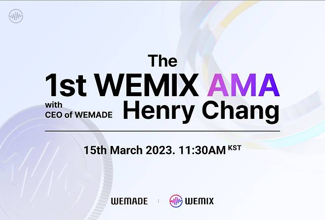위메이드가 '제1회 위믹스(WEMIX) AMA(Ask Me Anything) 간담회'를 3월15일 개최한다. 위믹스 팀은 3월2일부터 7일까지 질문자를 모집한다.