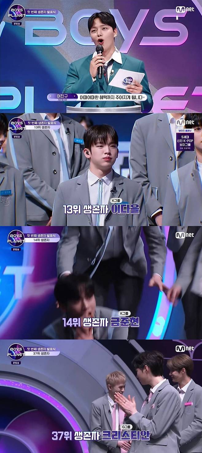 지난 2일 방송된 Mnet '보이즈 플래닛'에서는 첫 번째 생존자 발표식이 공개됐다.