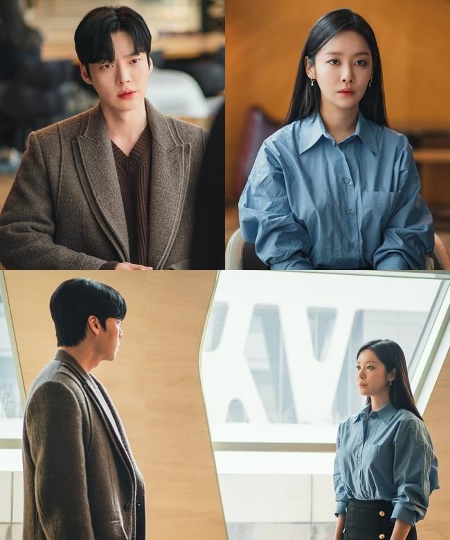 공개된 스틸 속에는 안재현(공태경 역)과 차주영(장세진 역)이 한곳에 앉아 서로를 빤히 쳐다보는 장면이 담겼다. 두 사람은 눈 호강 완벽 비주얼을 자랑하며 시선을 이끄는가 하면, 서로를 바라보는 날카로운 눈빛을 장착해 어색하고도 차가운 기류의 분위기를 자아내고 있다. 심상치 않은 두 사람의 모습에 의미심장한 관계를 예고, 이들 사이에서 펼쳐지는 또 다른 스토리에 궁금증을 불러 모은다.