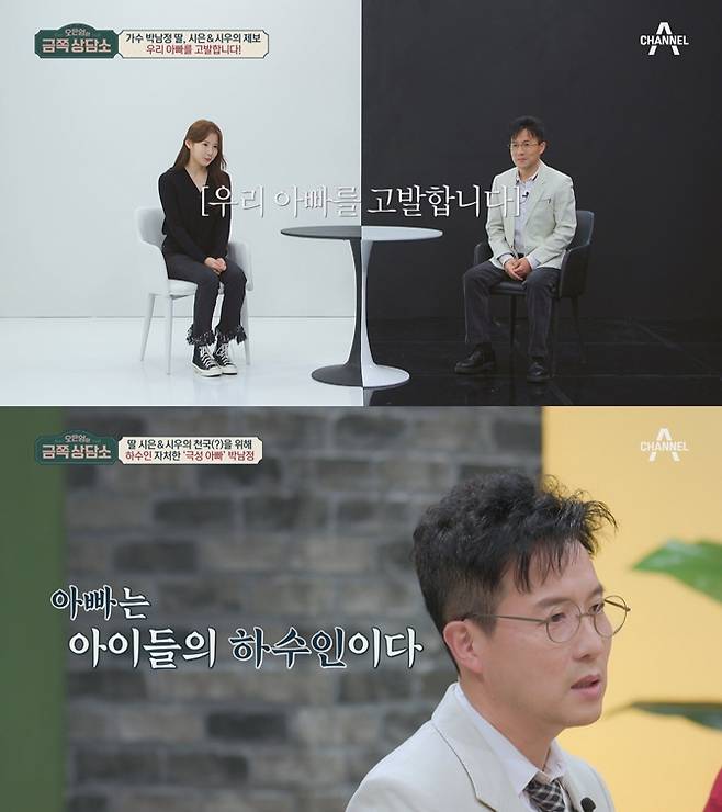 'ㄱㄴ'춤으로 전 국민을 들썩이게 했던 가수 박남정이 자신의 재능을 그대로 물려받은 딸 박시우와 함께 상담소를 방문한다. 본격 상담에 앞서 박남정은 첫째 딸 시은은 걸그룹 STAYC의 메인보컬을, 둘째 딸 시우는 연극영화과 대입 5관왕임을 밝히며 두 딸의 근황을 소개한다.