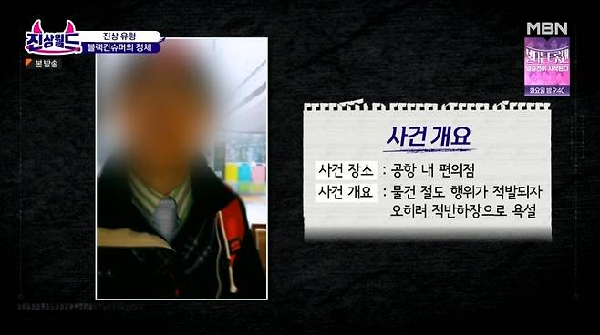 한 진상 고객은 휴대전화 이용 요금 결제를 거부하며 폭언을 퍼부었다. 알고 보니 해당 진상 고객은 2014년 4월 인천공항의 한 편의점에서 물건 절도 행위가 적발되자 오히려 적반하장으로 욕설했던 일명 '공항도둑'이었다.