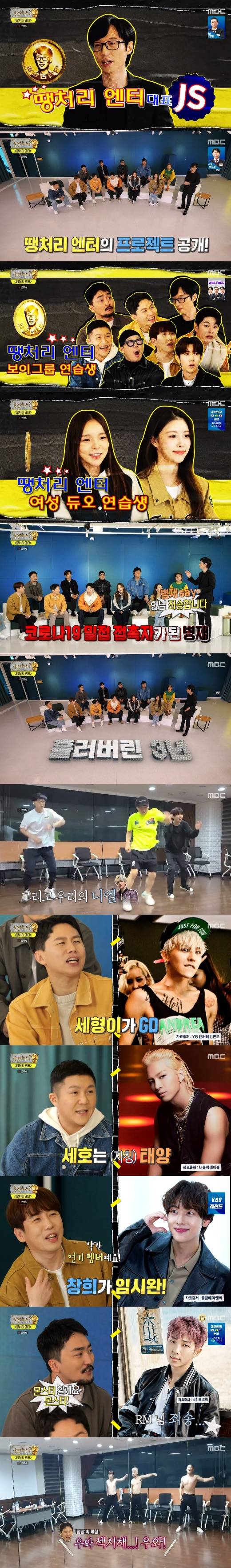 이내 유재석은 "오늘부로 저와 함께할 연습생들이다"라며 "'땡처리 엔터'는 사실 팝업이다. 장점은 '치고 빠진다'라는 거다. 빨리 결과물을 만들어 보여드리고 폭파되는 거다. '우리가 완성하지 못한 걸 완성하는 데서 마무리가 된다'라는 것. 장기 프로젝트 아니다"라고 밝혔다.