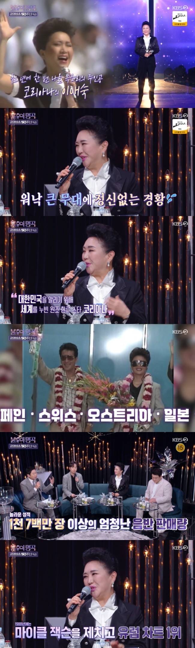 3월 4일 방송된 KBS 2TV ‘불후의 명곡’에서는 공영 방송 50주년 특집을 맞아 코리아나 이애숙이 출연했다.