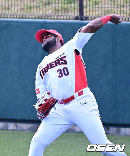 5회초 KIA 소크라테스가 삼성 김헌곤의 타구를 잡아 홈으로 송구하고 있다. 2023.03.05 /sunday@osen.co.kr