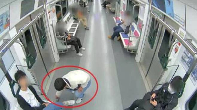 한 남성이 전동차 안에서 취객이 떨어트린 휴대전화를 주워 옆에 놓아주는가 싶더니, 지하철 문이 열리자 그대로 들고 달아납니다.