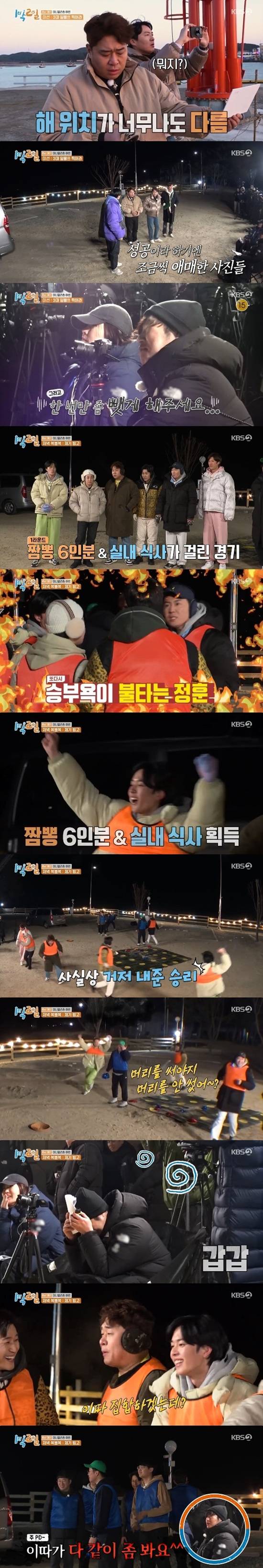 짬뽕 6인분, 실내 식사가 걸린 1라운드에서는 PD팀이 몸개그를 선보이며 멤버들이 손쉽게 승리를 했다.