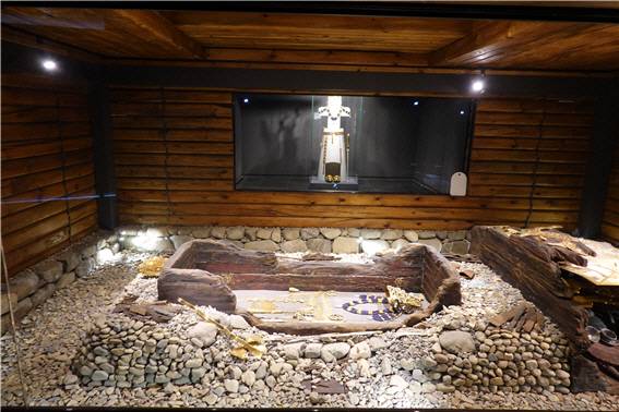 천마총의 관곽(棺槨). 시신을 안치했던 관곽의 정중앙이 핵심 혈처에 해당한다. 510년 경의 신라의 풍수실력이 놀라울 뿐이다.