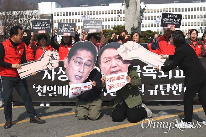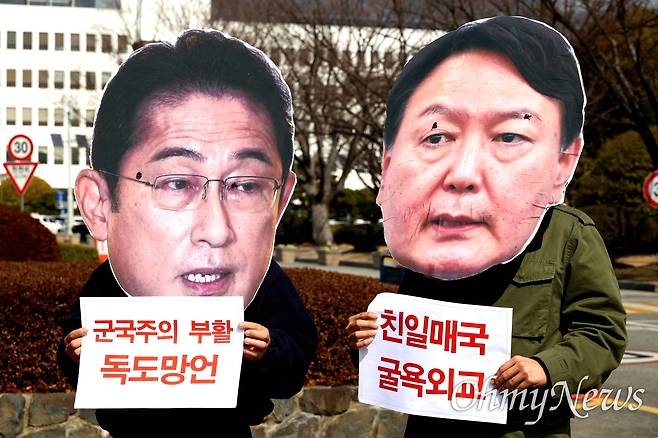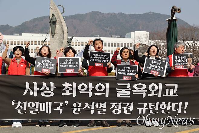 - "윤 대통령이 일본에 면죄부" 11시 30분, 외교부 앞 터져 나온 함성