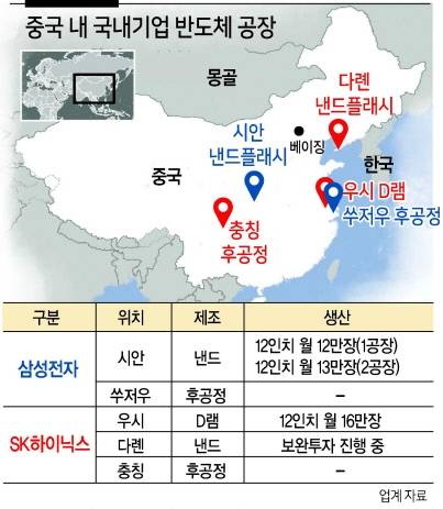 아울러 중국 투자 제한은 삼성전자, SK하이닉스 등 중국에 메모리 생산기지가 있는 한국 기업에 ‘중국 사업을 접으라’는 메시지나 다름없다. 삼성전자는 중국 시안에서 낸드플래시의 40%를, SK하이닉스는 우시 D램공장에서 50%를 생산하고 있다. 공정 업그레이드가 되지 않으면 중장기적으로 반도체공장은 폐쇄 수순의 길을 걸을 수밖에 없다.