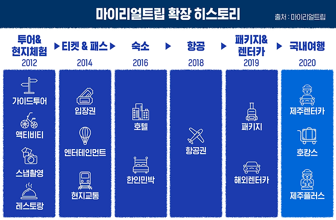 마이리얼트립 창업 당시는 정해진 일정대로 움직여야 하고 유명 관광지 위주로 방문하는 전형적인 패키지여행이 아닌, 자유여행의 형태로 해외여행을 떠나고자 하는 여행자의 수가 늘어나던 시기였다. 이런 상황에서 많은 여행사들이 자유여행자를 위한 상품을 보유하고는 있었으나, 이는 항공과 숙소 예약을 제공하는 서비스가 전부였고, 정작 여행에서 중요한 ‘현지에서 무엇을 할 것인지’에 대한 부분을 해결해주지는 못했다. 마이리얼트립은 이 부분에 착안하여 여행지 현지에서 즐길 수 있는 투어와 액티비티 상품들을 중개하는 서비스를 론칭했다.