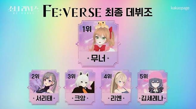 최종 데뷔 기회를 거머쥔 5명의 주인공은, 무너, 서리태, 크앙, 리엔, 김세레나. 이들은 오는 5월 ‘피버스(Fe:verse)’라는 그룹명으로 데뷔 앨범을 발매하고 신곡 쇼케이스 개최 등 활발한 활동을 이어갈 것으로 예고, 벌써부터 팬들의 기대를 모으고 있다.