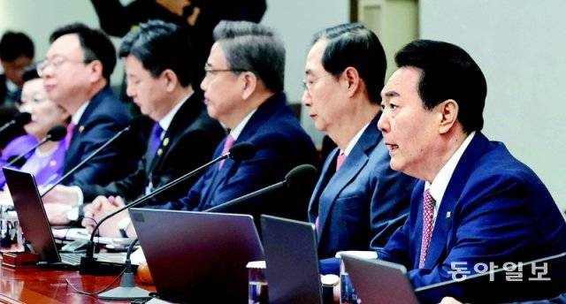 | “한일 협력은 세계 번영 기여” 윤석열 대통령(오른쪽)이 7일 서울 용산 대통령실 청사에서 열린 국무회의에서 발언하고 있다. 이날 윤 대통령은 정부의 일제강점기 강제징용 피해자 배상 해법과 관련해 “한일 간 미래지향적 협력은 양국은 물론이고 세계 전체의 자유·평화·번영을 지켜줄 것”이라고 말했다. 최혁중 기자 sajinman@donga.com |