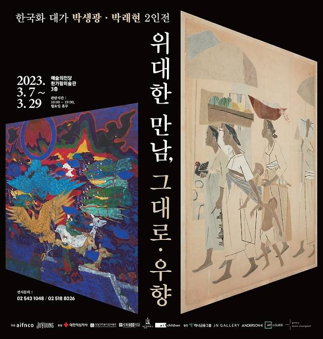 ![[서울=뉴시스] 박진희 기자 = 한국채색화 남녀 대가 그대로 박생광(1904~1985)과 우향 박래현(1920~1976)의 작품을 한자리에 보여주는 대형 기획전 '한국화 대가 박생광·박래현 2인전-위대한 만남, 그대로·우향' 전시가 7일 서울 서초구 예술의전당 한가람미술관에서 개막했다. 2023.03.07. pak7130@newsis.com](https://img1.daumcdn.net/thumb/R658x0.q70/?fname=https://t1.daumcdn.net/news/202303/08/newsis/20230308050022728ajmu.jpg)