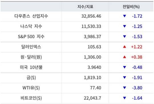뉴욕증시, 파월 ‘빅스텝’ 시사에 일제 급락 ‘테슬라 3.15%↓’…유가·비트코인 하락 [출근전 꼭 글로벌브리핑]