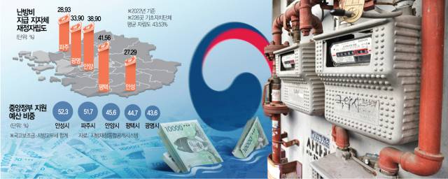 보다 근본적으로는 중앙정부라는 든든한 돈줄이 지자체의 뒷배가 되고 있다. 사실 이번에 난방비를 지급한 지자체의 재정자립도만 놓고 보면 전국 기초자치단체 226곳의 평균 재정자립도(43.53%)를 밑돈다. 지방재정통합공개시스템에 따르면 지난해 파주시의 재정자립도는 28.93%, 안성시 27.29%, 광명시 33.90%, 안양시 38.90% 등이었다.