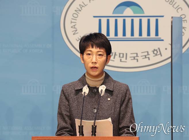 | ▲ 이태원참사 국조특위 위원인 장혜영 정의당 의원이 2023년 1월 13일 서울 여의도 국회 소통관에서 특수본 수사 결과 발표 및 국정조사 종료에 따른 정의당의 3대 요구 기자회견을 하고 있다. |