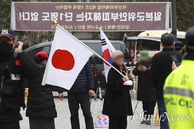 [오마이포토] 일장기 들고 '수요시위 중단하라'