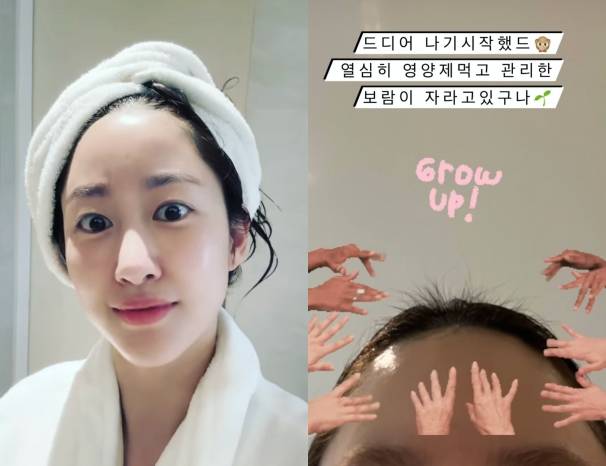 배우 전혜빈은 8일 개인 SNS 계정을 통해 “드디어 나기 시작했다. 열심히 영양제 먹고 관리한 보람이 자라고 있구나”라는 글과 함께 사진 한 장을 공개했다. 공개된 사진에는 이마라인에 이제 막 자라나고 있는 잔머리가 담겨 있다. 삐죽삐죽 자라나는 머리카락에 전혜빈은 행복한 마음을 고스란히 드러냈다.