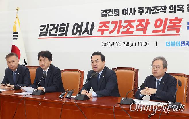 | ▲ 박홍근 더불어민주당 원내대표가 7일 서울 여의도 국회에서 열린 김건희여사 주가조작 의혹 진상조사TF 기자간담회에서 발언하고 있다. |