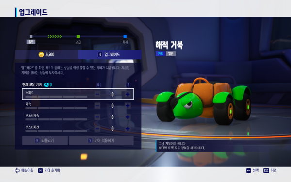 정규 시즌 핵심 콘텐츠는 '카트 업그레이드'다. 정규 시즌이 시작되면 유저들은 게임 재화인 루찌를 소모해서 원하는 성능을 업그레이드할 수 있다. 업그레이드로 속도, 가속, 부스트 속도, 부스트 지속 시간 등 자신이 원하는 옵션을 상향시킬 수 있다. 이를 통해 자신만의 개성 넘치는 주행이 가능할 거로 예상된다.