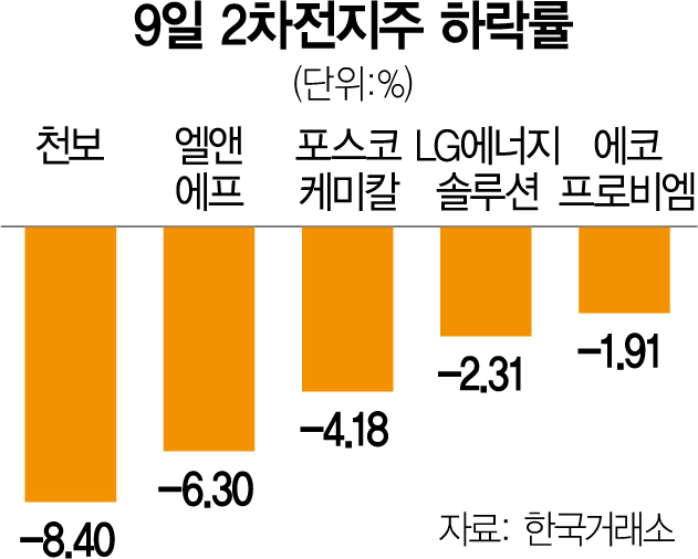 연일 고공 행진했던 2차전지주 주가가 일제히 하락 마감했다.