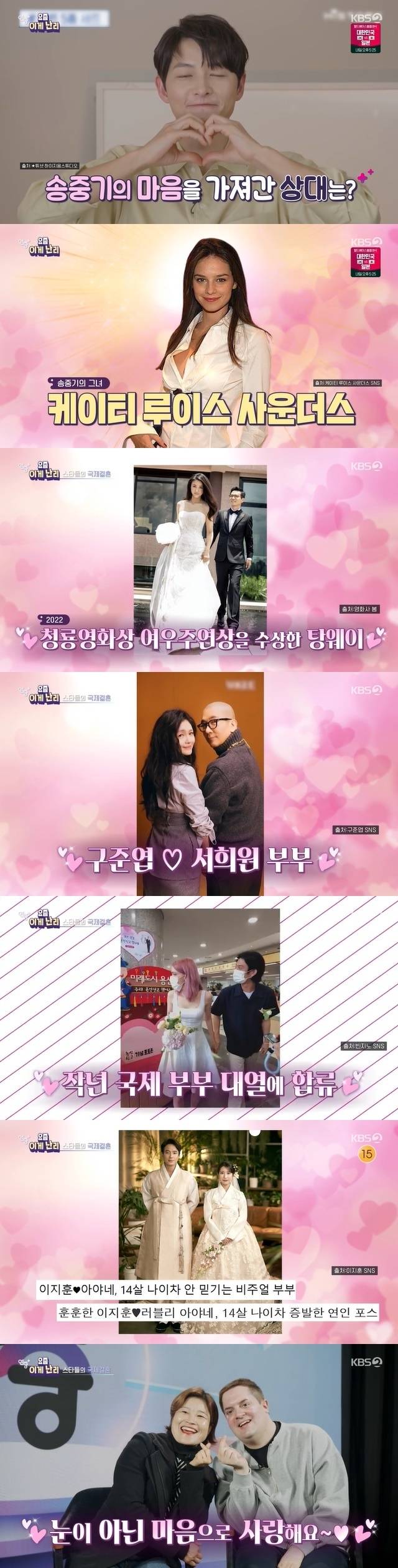 3월 9일 방송된 KBS 2TV 예능 '연중 플러스' 123회에서는 국경을 뛰어넘는 사랑을 보여준 스타 부부들이 소개됐다.