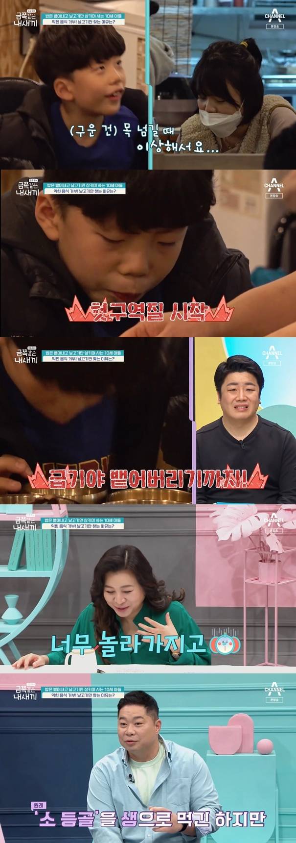 10일 방송된 채널A '요즘 육아 - 금쪽같은 내새끼'(이하 '금쪽같은')에서는 밥은 뱉어내고 날고기만 삼키며 사는 10세 아들의 사연이 전파를 탔다.
