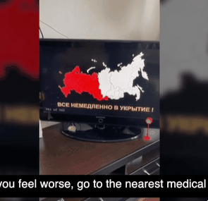 해킹된 화면에는 러시아의 지도가 표시돼 있고, 서쪽에서 점차 동쪽으로 붉은색이 뒤덮이면서 핵 공격이 실제 이뤄진 듯한 착각을 불러일으킨다. 이후에는 검정색과 노란색의 방사능 경고 표시가 뜨면서 사람들을 더욱 불안에 떨게 했다.