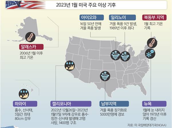 美, 이틀새 번갈아 더위·폭설… ‘이상기후 역습’에 수백명 숨져 [세계는 지금]