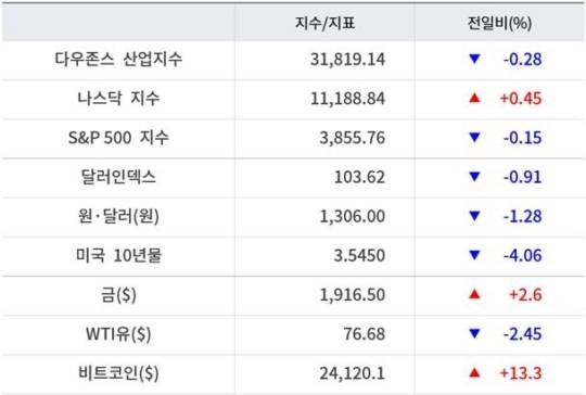 [글로벌시장 지표 / 3월 14일 오전 6시 현재]