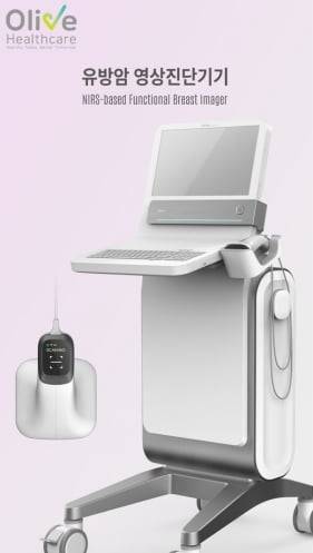 올리브헬스케어의 유방암 진단기기는 근적외선 분광학 기술로 악성 조직과 관련 있는 생체 지표들을 측정해 종양 부위의 영상을 제공한다고 했다.