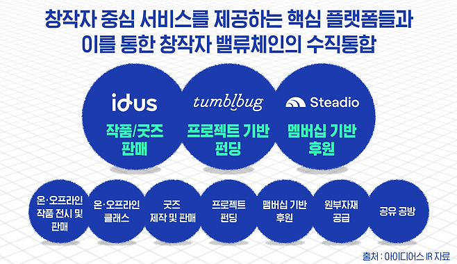 아이디어스는 작가와 구매자를 연결하는 플랫폼으로, 이 관계가 강화될수록 플랫폼은 더 커진다. 아이디어스는 단순 커머스가 아닌 '팬덤'과 비슷한 성격을 보이는 플랫폼으로, 이 플랫폼에서 작가는 물건 판매자의 역할만 하는 것이 아니다. 작가들은 창작자로서 추구하는 가치나 이상, 스스로의 솔직한 모습 등을 구매자들에게 지속적으로 공개하고 적극적으로 의사소통함으로써 구매자들은 마음에 드는 작가들에 대해 일종의 팬덤을 형성하게 된다.