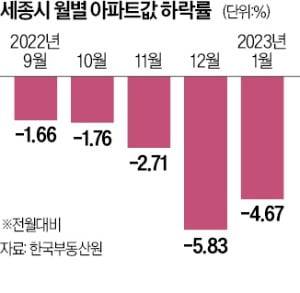 금리 인상 국면이 마무리되면 세종 집값이 빠르게 회복될 수 있다는 기대도 깔려 있다. 세종시 공인중개사무소 관계자는 “하락 폭이 큰 지역이 회복 국면에서 반등도 빠를 것이란 인식이 있는 게 사실”이라며 “국회 세종의사당과 대통령 제2집무실 건립 등의 호재에도 투자자들의 관심이 많다”고 했다.