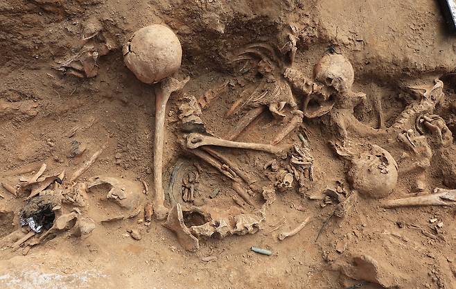 머리 위 녹슨 탄피, ㄴ자로 꺾인 몸... 일주일만에 드러난 백골들