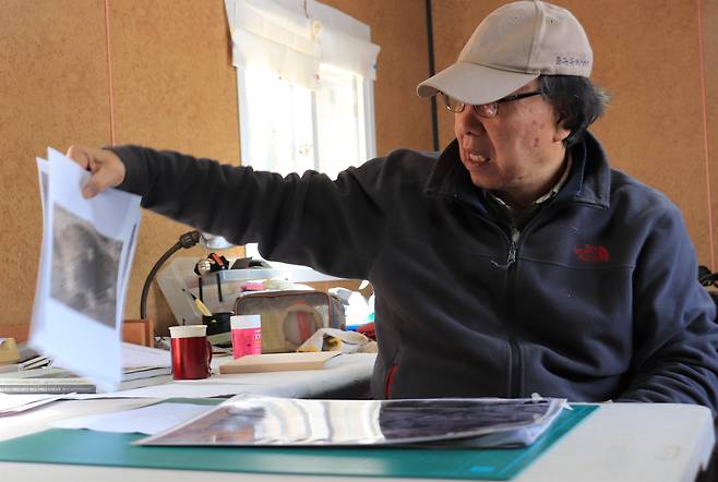 | ▲ 박선주 충북대 명예교수가 당시 항공사진을 통해 현장을 설명하고 있다. |